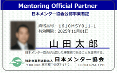 MOPライセンス取得者は、『日本メンター協会公認パートナー(MOP)』の呼称を、名刺やホームページなどに掲示することができます。その呼称を活用できることは、メンタリング事業を展開していくことや、社会や組織内において、メンタリングの専門家として推進していくために、大きなアドバンテージになります。